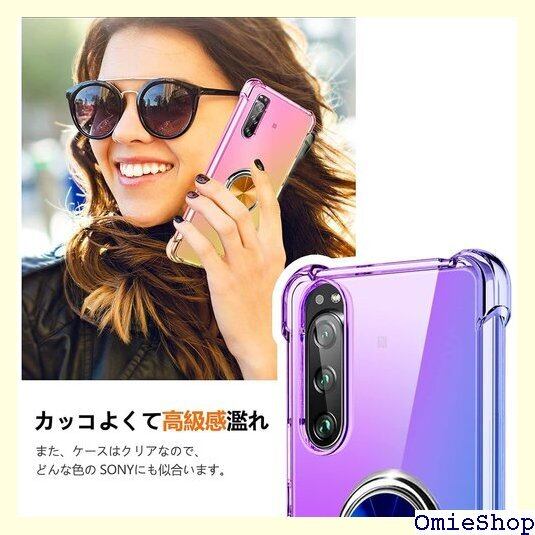 Xperia ACE III ケース リング付き クリア TPU グラデーション色 SOG08 SO-53C A203SO 携帯カバー 耐衝撃 透明 車載ホルダー対応 一体型 落下防止 防塵 変形防止 全面保護 ソニー エクスペリア ace iii カバー 紫/ブルー W-CSZH-31-19 600